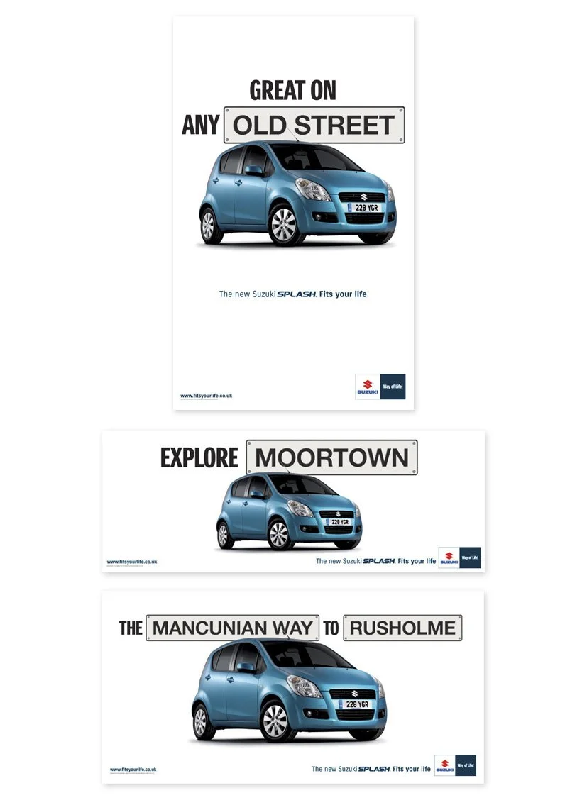 With ad space already booked in major cities across the UK, we raised awareness of the Splash by using places and street names that are specific to that particular area. This reinforced its positioning as an ideal car for the city. The work featured in Campaign magazine.