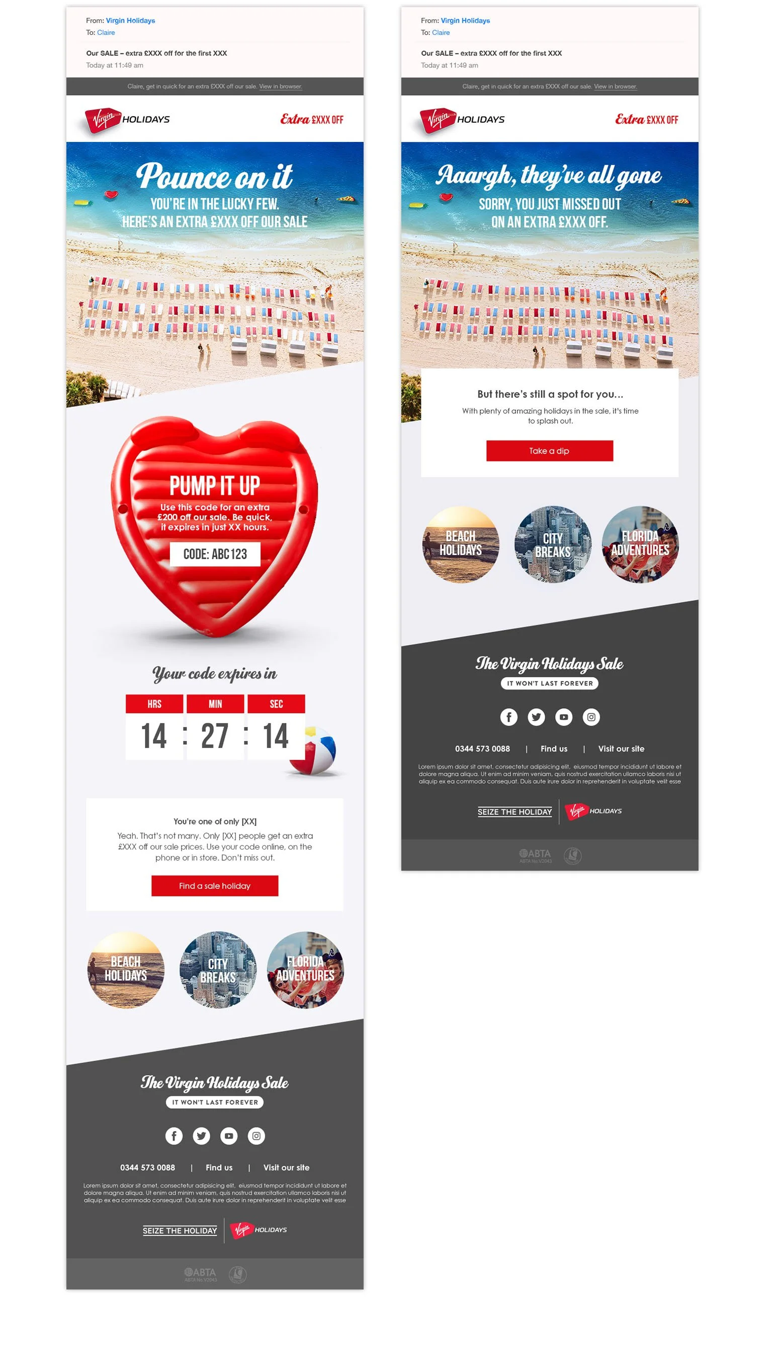 Alongside AMV’s ‘The Sale won't last forever’ tv ad, our email campaign was designed to create a sense of scarcity around sale holidays.